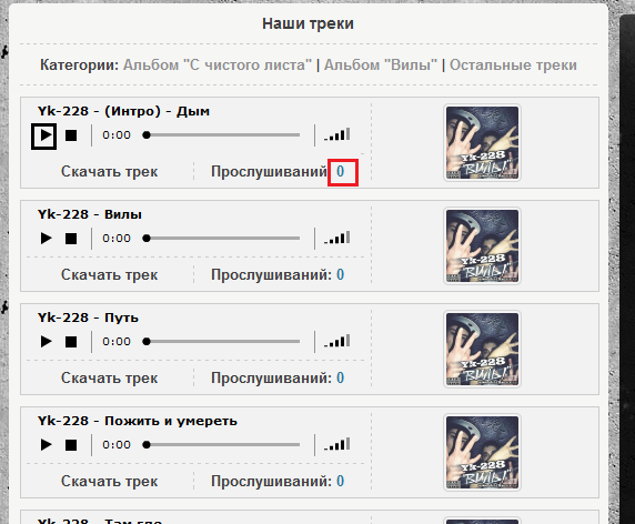 pro100(4eJI), Как это поставил у меня во втором материале т.е где написано yk-228 - Вилы стала цифра 1, но другие треки слушаю не чего не учитывается. Может надо стандартный плеер поставить?